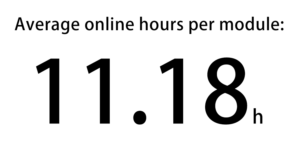 The mean of a module's online hours is 11.18, while the median and standard deviation are 11 and 9.74, respectively, across all 25 modules. We may deduce that these statistics are regularly distributed because the median and mean are nearly identical. In terms of total hours spent on these 25 modules, the mean, median, and standard deviation are 28.18, 24.43, and 9.43, respectively. Because the standard deviation of online hours is more than the total hours, the dispersion of online hours among various modules is greater than the general level.